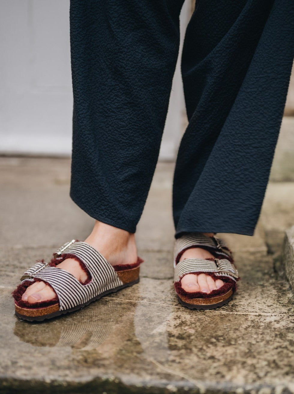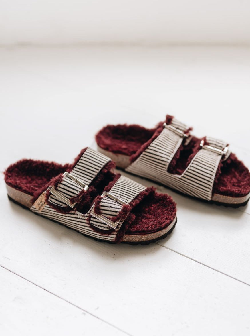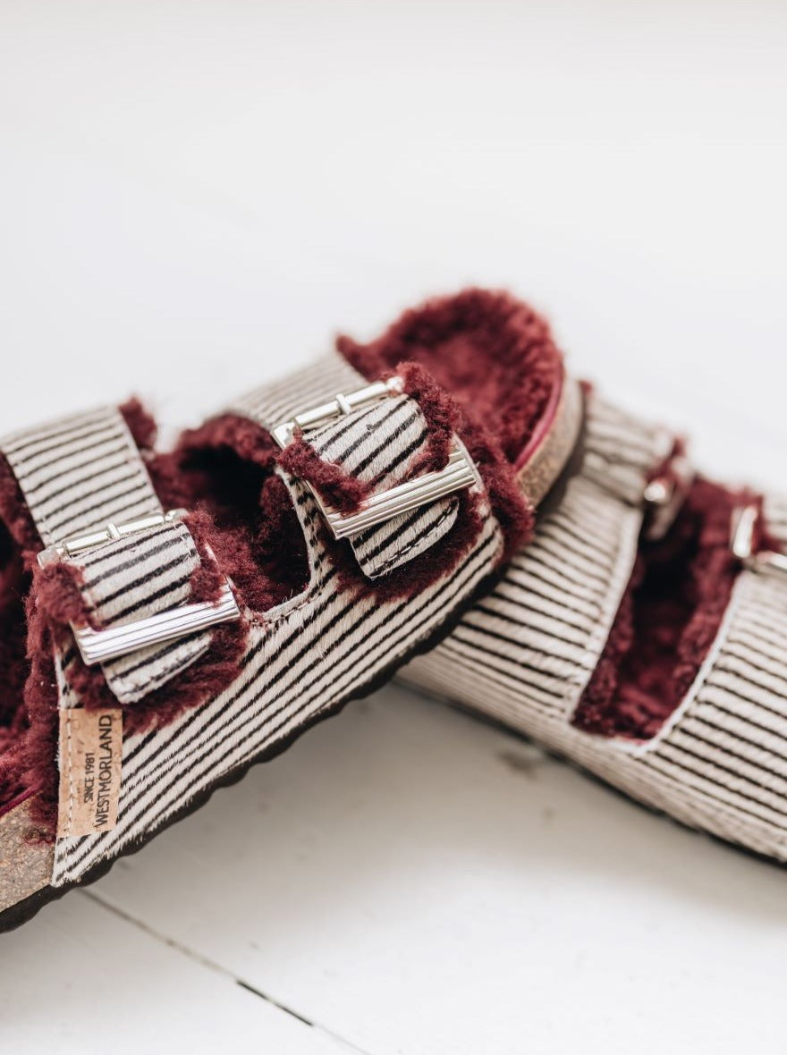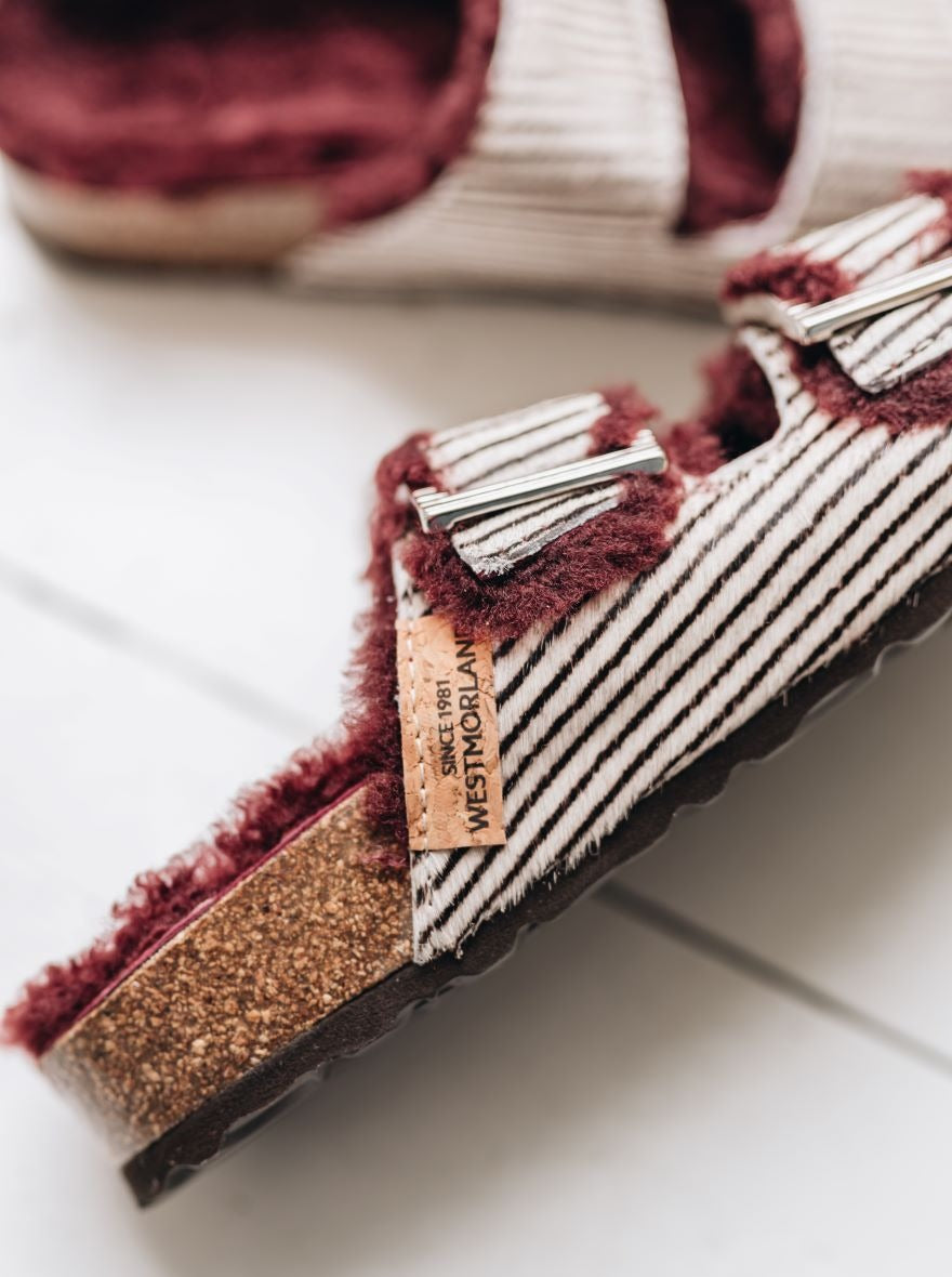 Wear me inside or outside. Spanish merino sheepskin-lined, double-strapped sandals with a cork ergonomic sole, that you can wear indoors or out. Supreme comfort and style all rolled into one.